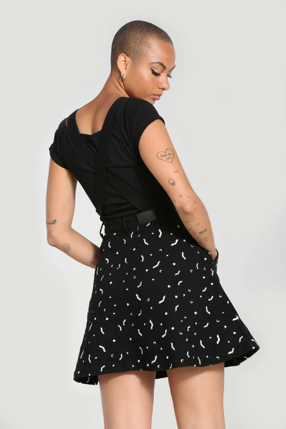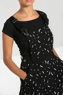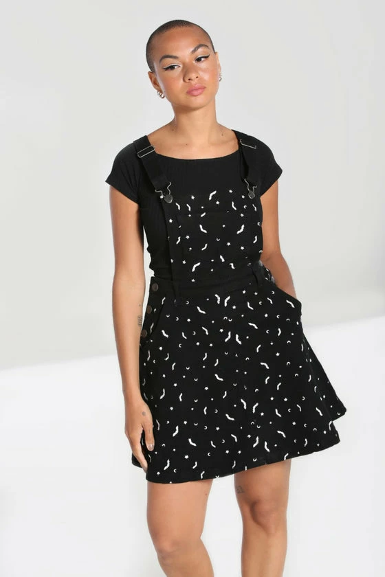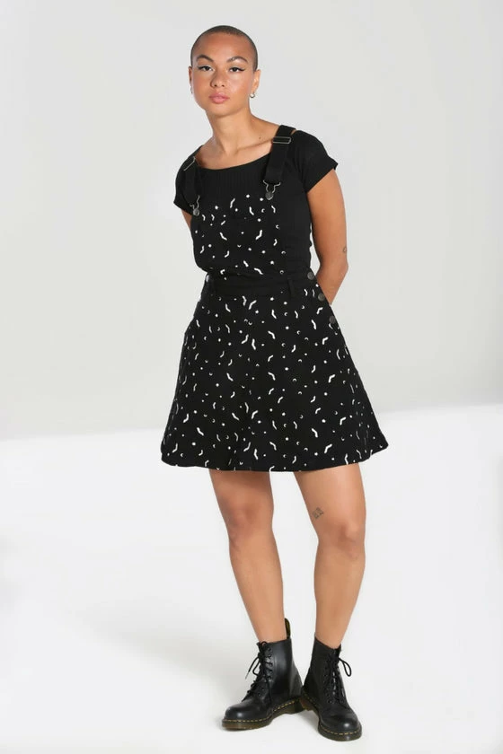 Hell Bunny Bat Pinafore Dress In Black Embroidered Pattern