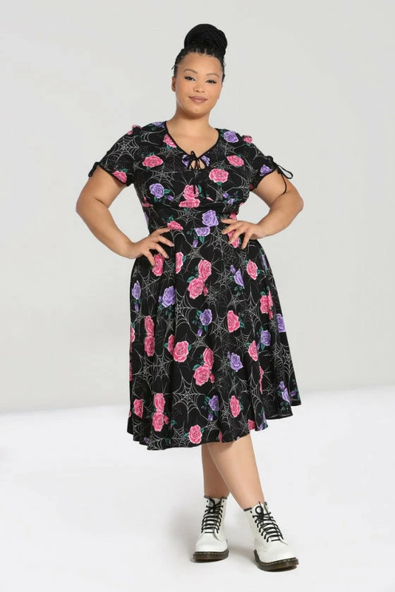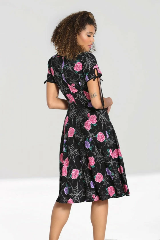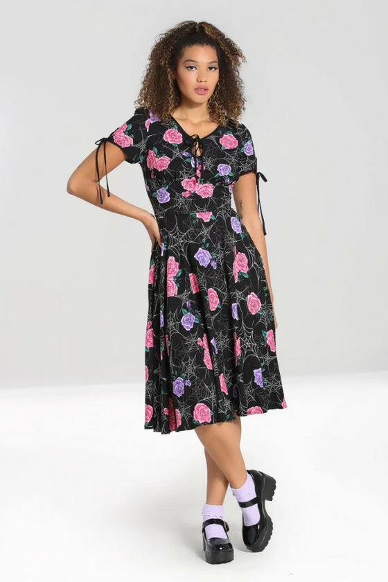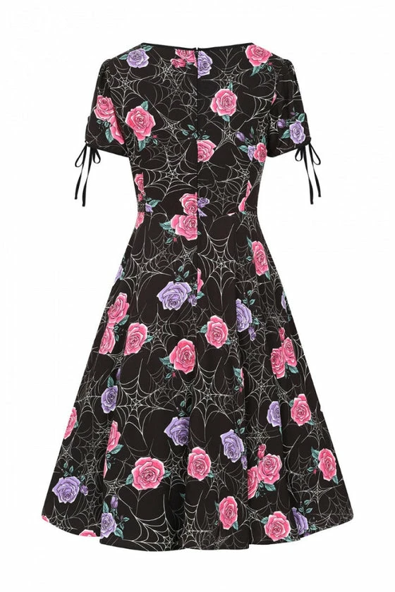 Hell Bunny Eloise Mid Dress Floral Print With Webs
