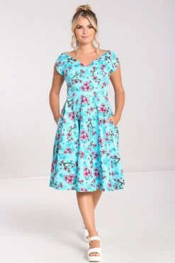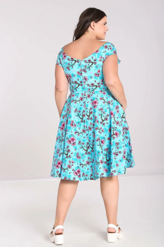 Hell Bunny Louella Dress Aqua Cherry Blossom Floral