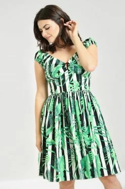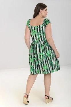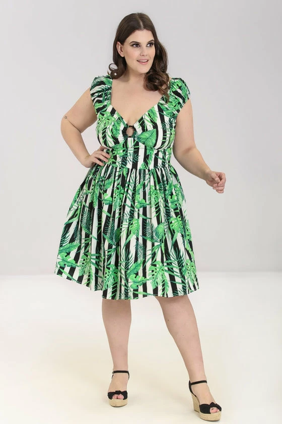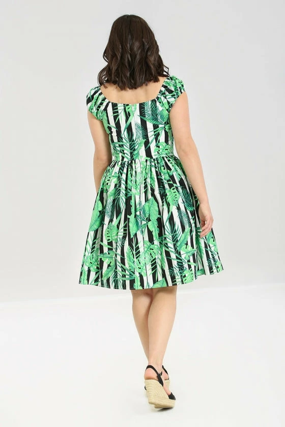Hell Bunny Solana Mid Dress Striped And Tropical Leaves