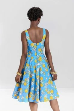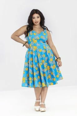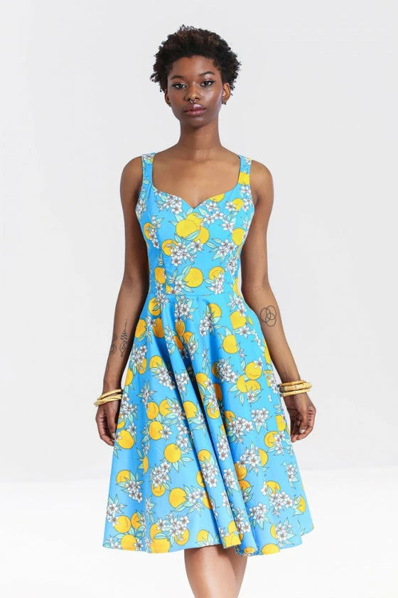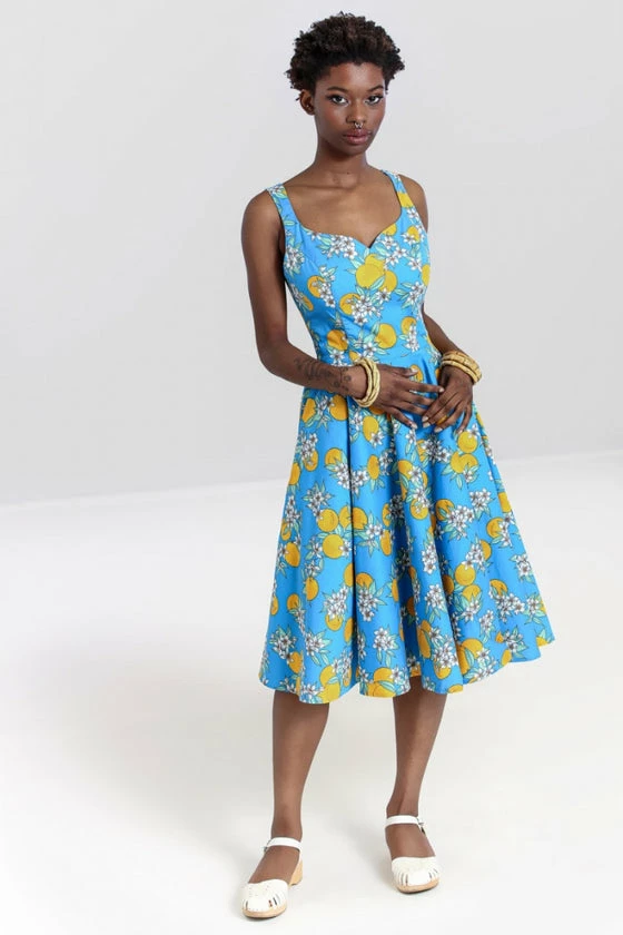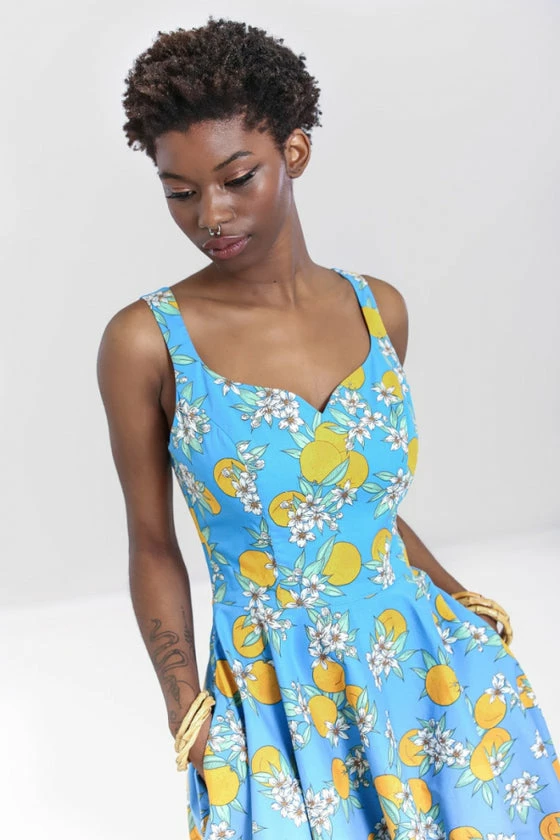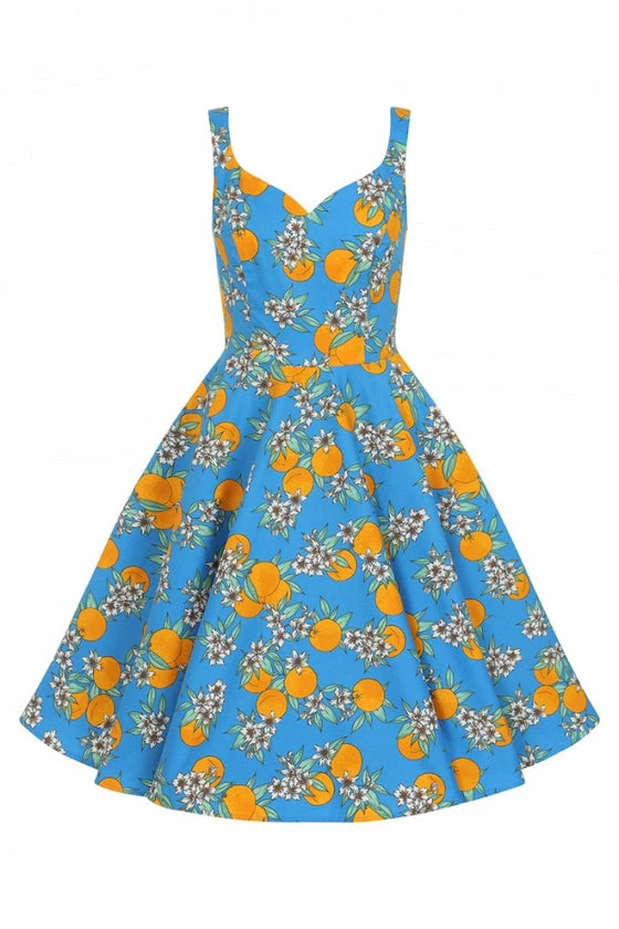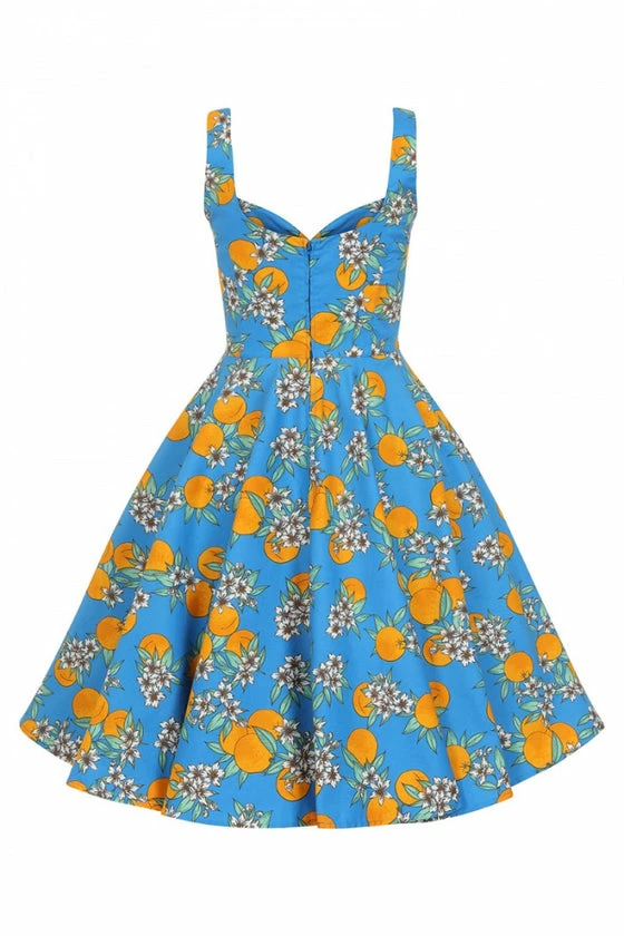 Hell Bunny Valencia 50’s Dress Orange Print On Blue