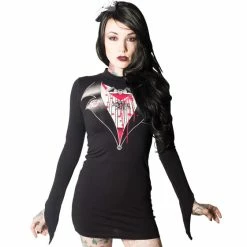 Drac is back, go super vamp in this kreepsville 666 super stretchy sleeved figure hugging dress, with high neck and vamp sleeve detail, you’ll be the bella of the ball!, discharge print on . Made in the USA.