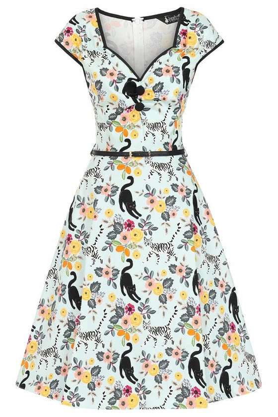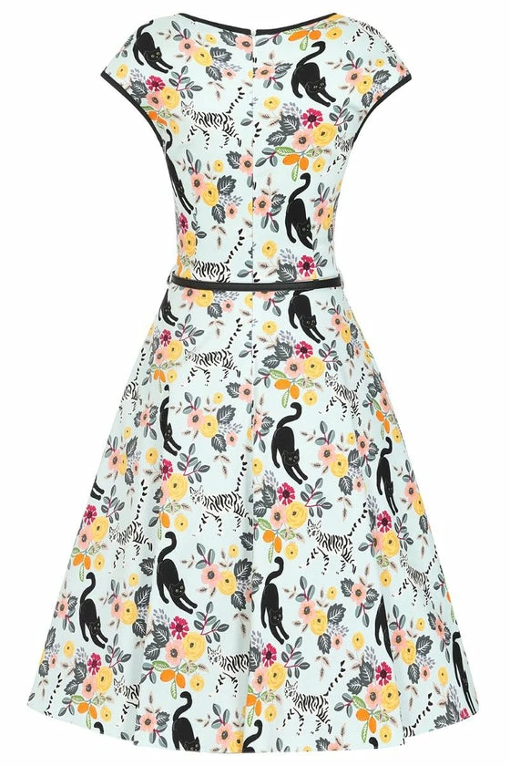 Lady Vintage Isabella Dress In Cute Kitty Sky