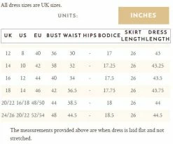 | Size | UK10, UK12, UK14, UK16, UK18, UK20-UK22, UK24-UK26, UK28-UK30 |