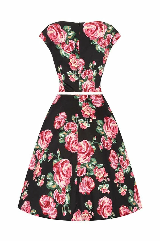 Lady Vintage Isabella Dress In Pink And Black Rose Classic