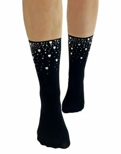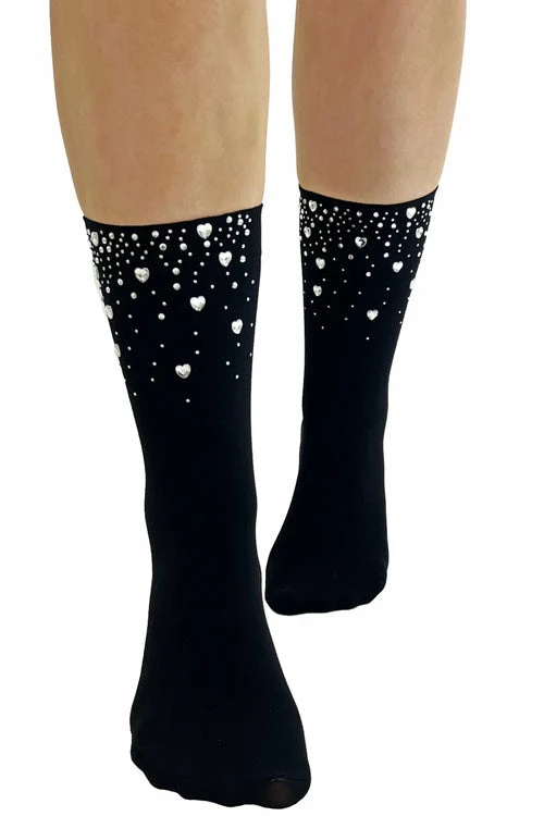 Pamela Mann Hosiery Pamela Mann Black Ankle Socks With Diamante Hearts Front Sparkle