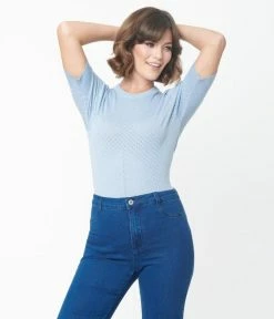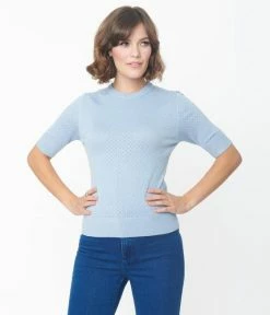 Timeless London Daisy Knit Top In Light Blue – I’m Eco-Friendly!